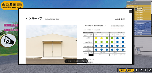 また、同社が業務効率化と業務プロセス改革を実現するために取り組んでいるのが、「山口産業メタバースシティ」の製作だ。メタバース空間にテント倉庫をはじめとする同社の膜構造製品などが実装されており、その場で実物を見ているかのようなリアルな体験ができる。「テント倉庫などの膜構造は建築物であるため、お客さまに実物を見せる機会が限られているという課題がありました。こうした課題を解消するため、お客さまがどこにいても商品を見られるメタバースシティの製作を約2年かけて進めました。BIMデータを活用し、リアルに近い空間を再現していることもポイントです。今までの営業の在り方を変える商談ツールになるのではないかと考えています」と山口産業 DX推進室 坪上竜也氏はアピールする。