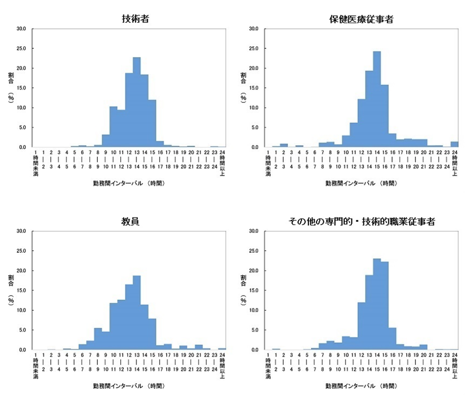 総務省がホワイトカラー労働者の勤務間インターバルの状況推計を発表。