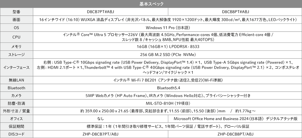 さらに薄型・コンパクトでスタイリッシュなデザインながら、ビジネスに必要な機能を標準搭載しているため、