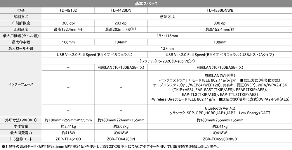 ※TD-4550DNWBのみ対応