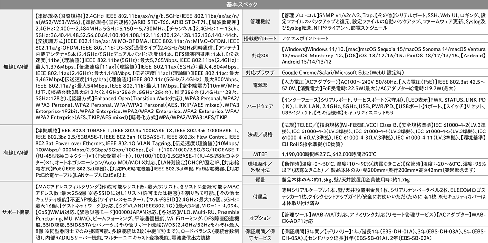 最新規格Wi-Fi 7の高速通信を低コストで。2.4GHz、5GHzの周波数帯の同時通信を実現。これにより高速、低遅延の通信を実現しました。最大512台(各帯域256台)のデバイスをスムーズに接続可能。オフィスでも教室でも多台数同時接続時に安定した通信が可能です。