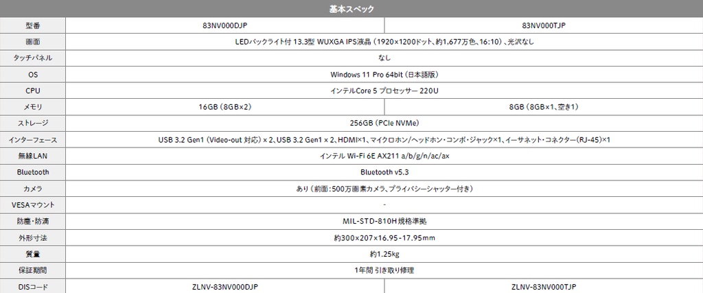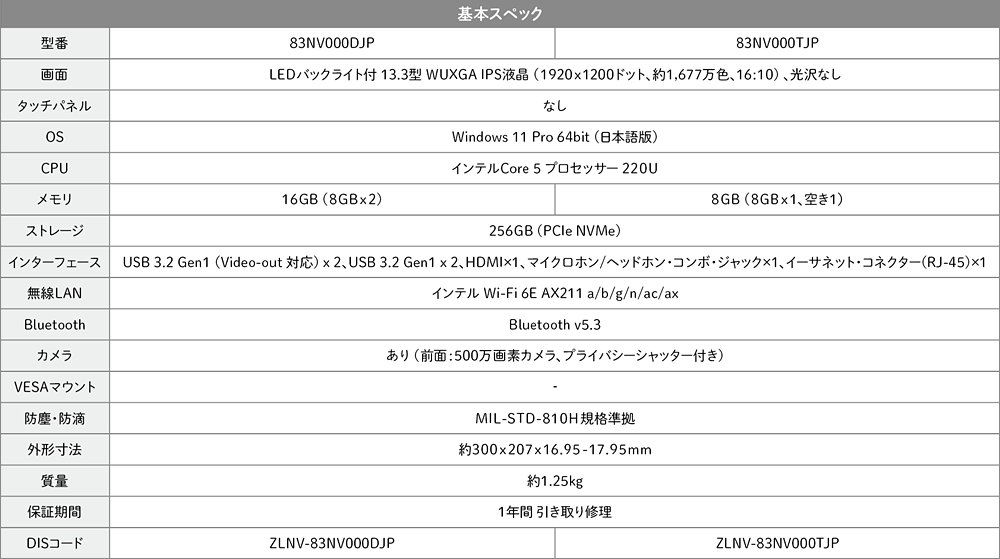 ビジネスの生産性を高める13.3型モバイルノートPC