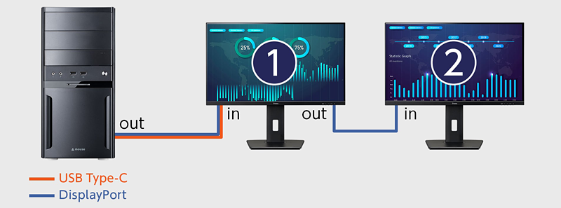 DisplayPort出力により、最大4台のマルチディスプレイ接続を実現。作業領域を拡張し、効率的な業務をサポートします。