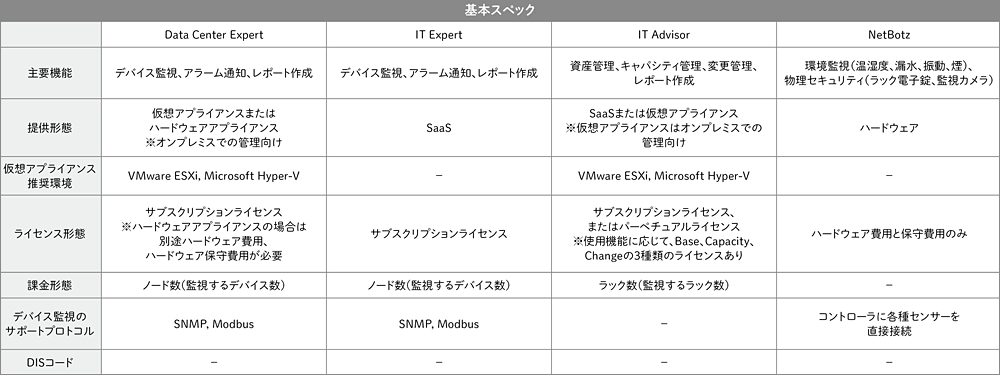電源(PDU,UPS)や空調システムなどを中心に、ITインフラを支えるファシリティを統合管理します。
