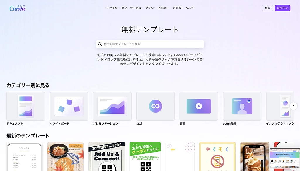 Canvaは、直感的な操作と豊富なテンプレートを備え、SNS投稿やプレゼン資料をスピーディーに作成したい方に適しています。個人からビジネスまで幅広い用途で活用できるのが魅力です。