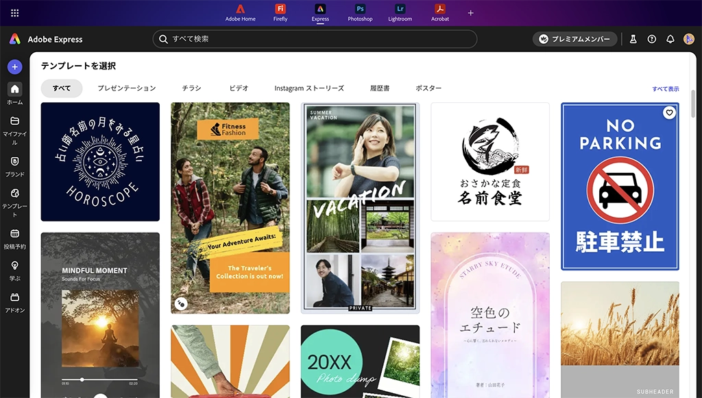 Adobe Expressのホーム