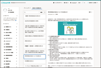 その一つが「お知らせ」機能だ。SmartHRには、アカウントが付与されている従業員であれば誰でもアクセスできる「従業員ポータル」画面が用意されている。この従業員ポータルには外部サービスへのスムーズなログインを実現できる「IdP」機能や給与明細の配付、人事評価、各種労務手続きなどのさまざまな機能の窓口が集約されている。この従業員ポータル画面に、2024年11月14日から新たに実装したのが、前述したお知らせ機能だ。