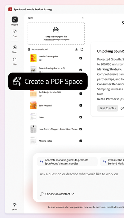 では具体的にどのように利用するのだろうか。説明会では実際の活用デモの映像も公開された。まずはPDF Spacesでの対話型ナレッジハブの作り方だ。最初にAcrobatにアクセスし、PDF Spacesのワークスペースにユーザーが持つナレッジをまとめてアップロードする。アップロードできるナレッジはPDFばかりでなく、WordファイルやWebページのURL、ミーティングスクリプト(会議の文字起こし)などにも対応している。アップロードが完了するとAIがそれらの内容を分析し、複数のファイルの中から主要なポイントや、顧客が抱える課題などさまざまな角度からのサマリーを作成してくれる。ユーザー側がプロンプトを打ち込めば、その内容に対応した回答を生成するほか、ユーザーの業務内容に応じた役割をAIアシスタントに持たせることも可能だ。山本氏は「例えば『営業アシスタント』をAIアシスタントに持たせてみましょう。そのAIアシスタントに何を期待しているのかを書くなど、ペルソナを作ってあげると、そのAIアシスタントが私の代わりに仕事をしてくれます。私の役割と、AIアシスタントにやってもらう役割を明確に分けることで、同じ文章を見ながら違った角度で分析したり、違った角度でサマリーを書いてもらったりできるのです」と語る。