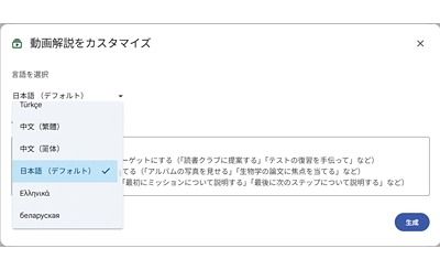 2024年11月号の記事でも「翻訳」機能に触れましたが、多言語対応も大幅に強化されています。現在、NotebookLM のインターフェースと機能は50以上の言語で利用可能となり、まさにグローバルな共同作業を支える頭脳となりました。