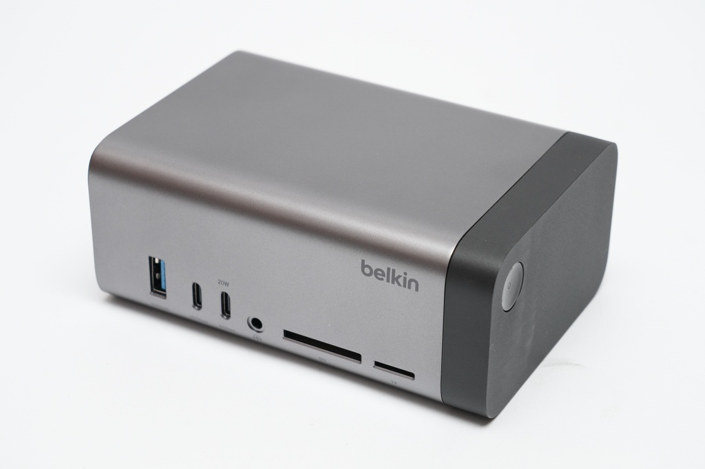ベルキンの「USB-C 11-in-1 Pro GaNドック」は、150WのGaN電源を内蔵し、1本のUSB-Cケーブルで11個もの端子をノートPCに拡張するUSBハブ。最大3つの外部ディスプレーを接続できるなど、豊富なインターフェースが特徴。据え置き使用を想定したサイズと重量ながら、電源を内蔵し、多数の周辺機器をシンプルに接続できる点が強みです。