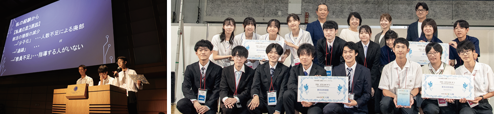 優秀賞に選ばれた神奈川県立平塚江南高等学校のチーム「放送委員会STEAM班」は、登壇者の内1人の生徒が「入りたかった演劇部が廃部になっており、消去法で放送部に入った」という経験から、少子化や過疎、教員不足などが原因となり、部活選びに消去法が用いられていることに対する課題意識を持ち、教員不足を解消する手段としてメタバース空間「メタクラブ」を提案した。すでに利用されているデータベースを応用しつつ、指導者や地域の人々と連携しながら県単位で部活動に取り組むような仕組み作りを目指していくという。日本の現状を分析して上手く説明している点が評価され、受賞となった。