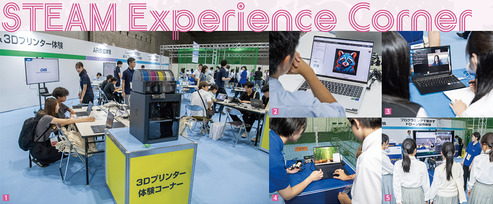 日経STEAM 2025シンポジウムでは、大阪会場と東京会場共にDISによる「DIS特設体験コーナー」が出展された。3Dプリンターやドローン、生成AIなど、最新の機器やソリューションに触れながら、STEAMのさまざまなプログラムを体験できるコーナーだ。そのほか、昨年に引き続き大阪会場では大学体験コーナーや相談コーナー、探究ポスター発表、デジタルアート展示・発表会なども開催され、終日多様な年齢層の来場者でにぎわった。