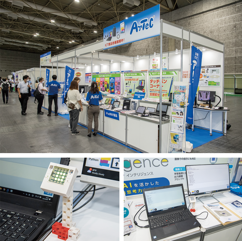 特に目立っていたのがプログラミング教材だ。高等学校の情報科向けのロボットをプログラミングする教材や、小学校向けのロボット教材など実に幅広い。またSTEAM教育に注目が集まる中、「ものづくり」を実践できるデバイスとして、昇華転写プリンターやUVインク搭載プリンターなどにも注目が集まっていた。本記事では本イベントに出展された多様な製品やメーカーなどからいくつかピックアップして紹介していく。