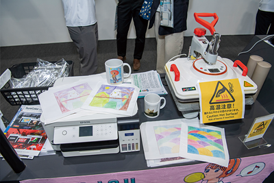 さまざまなプリンターを提供しているエプソン販売は、STEAM教育向けの教材の一つとして昇華転写プリンター「SC-F150」を出展した。昇華転写とは、あらかじめ専用の紙にデザインをプリントし、インクで熱を気化させることで、転写したい素材に染み込ませるプリント方法だ。ポリエステル素材のTシャツやハンカチにもプリントができるため、子供たちの想像力をカタチにするSTEAMの学びに活用可能だ。