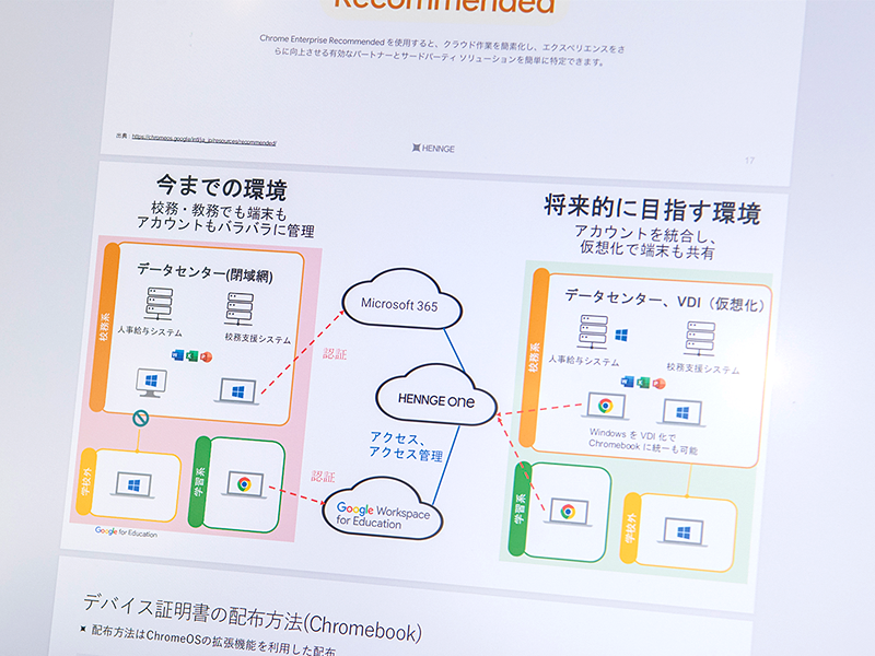 SaaSの活用を支えるクラウドセキュリティ製品として高いシェアを誇るHENNGE One。その教育機関向けのサービスがHENNGE One for Educationだ。文部科学省は2025年3月に「教育情報セキュリティポリシーに関するガイドライン」を改訂しており、その中で1人1台端末の利活用を進める上で、これまでの境界防御型セキュリティから、多要素認証などを活用した強固なアクセス制御による対策への転換が求められている。HENNGEでは多要素認証を実現する「HENNGE IdP for Education」と、情報漏えい対策を実現する「HENNGE DLP for Education」をラインアップしており、安全性と利便性を両立させた教育環境の構築を実現する。