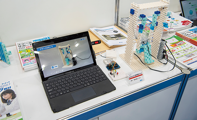 またDXハイスクール予算に対応した高校情報科向けのプログラミング教材も展示されており、IoTシステムからAIまで、技術科の教科書に沿った学習が行える。教員向けの指導の手引きなども用意されており、授業実践が行いやすい教材といえるだろう。