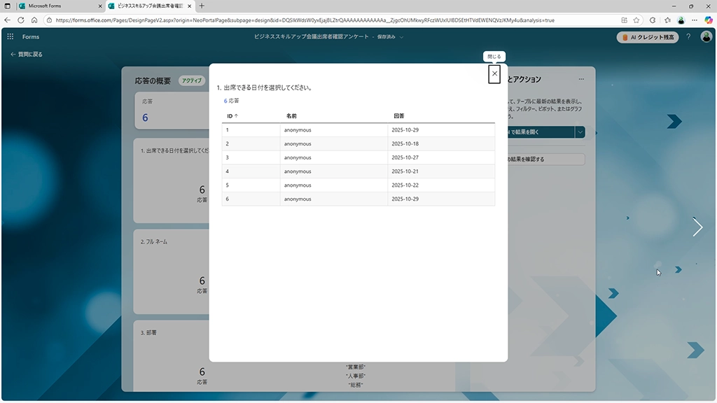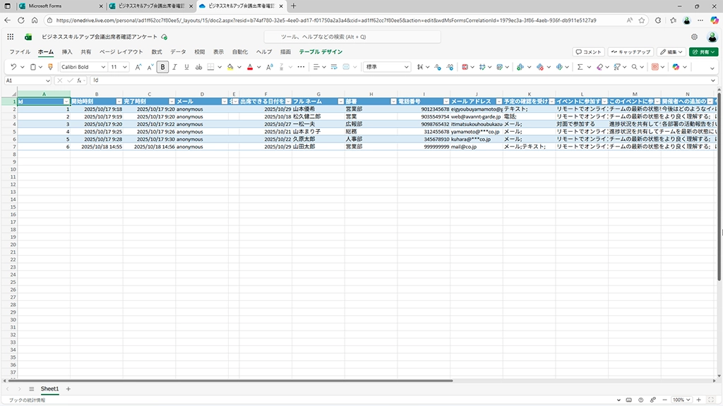 今回は、Copilotに作らせたアンケートで、名前の欄がanonymousとなってしまったが、別途フルネームを取得しているので特に問題はないだろう。回答者にもこの情報は伝わらないので、不要な項目は使わないと割り切った方が簡単に使える。