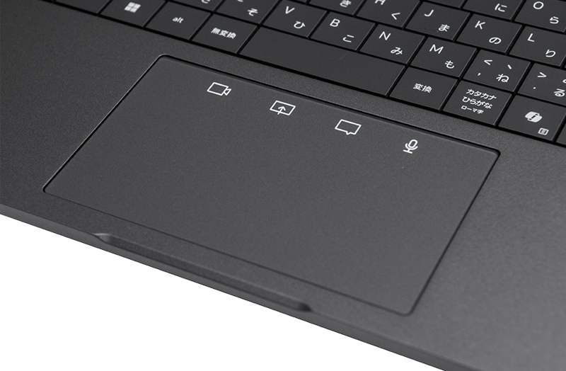 日々の業務における使い勝手にもこだわっています。例えば、「Microsoft Teams」や「Zoom」などのWeb会議ツールで利用できる「コラボレーションタッチパッド」を搭載しています。マイクやカメラのオン/オフといった会議中に必要な操作を素早く行えるほか、誤操作を防ぐ判別機能や、使わない時にスワイプで非表示にできる設計など、実用性の高い工夫が施されています。