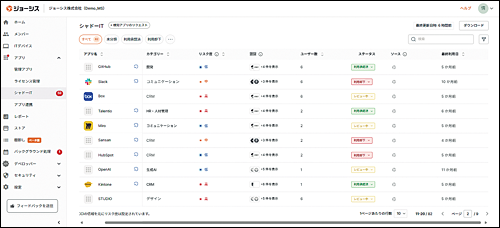 こうしたリスクに対処するため、JosysではシャドーITを可視化する機能を備えている。Webブラウザーの拡張機能や各種監査ログを活用してデータを収集し、認可されていないSaaSの利用を検出・可視化するのだ。「シャドーIT」のページから、可視化されたシャドーITの一覧と各従業員が利用しているシャドーITの詳細を確認できる。さらに各従業員が利用しているシャドーITは、「従業員台帳」のページからでも確認可能だ。