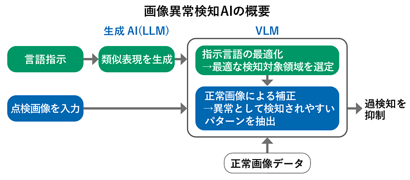 東芝は9月12日、インフラ設備やプラント設備の点検業務に活用可能な画像異常検知AIの開発を発表した。本技術では、画像を用いた検知手法と言語を用いた検知手法の二つを、画像と言語を組み合わせたAIモデル「Vision︲Language Model」(VLM)上で融合させることで、過検知の抑制を実現している。