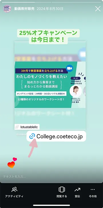 自社のWebサイトに誘導したい場合は、Instagramのプロフィール欄、もしくはストーリーズのリンクスタンプを活用します。