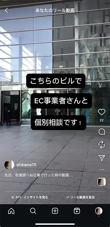 リールは最大90秒の縦動画で、Instagramの中でも最も拡散力が高いコンテンツです。フォロワー以外のユーザーにも届きやすく、「発見タブ」や「おすすめ」に表示される可能性があります。新規顧客に知ってもらうための入り口として有効です。