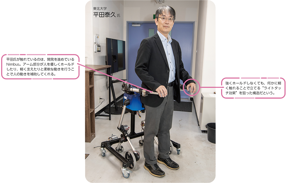 日本政府が推進する国家規模の挑戦的研究開発プロジェクト「ムーンショット型研究開発制度」。日本発の革新的技術や社会システムの創出を目指し、2050年を目標年として10の目標が掲げられている。そのムーンショット目標3に当たるのが「AIとロボットの共進化により、自ら学習・行動し人と共生するロボットを実現」であり、現在八つの研究開発プロジェクトが進められている。その内の一つ「活力ある社会を創る適応自在AIロボット群」では“人に寄り添う”ことにフォーカスしたAIロボット群の開発に取り組んでいる。プロジェクトマネージャーを務めている東北大学 大学院工学研究科 ロボティクス専攻 教授の平田泰久氏に、本プロジェクトの現在地を聞いた。