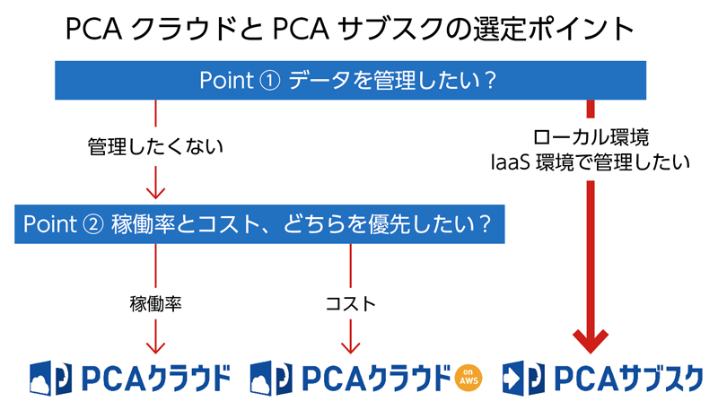 稼働率を重視する企業にはPCAクラウドを、コストを重視する企業にはPCAクラウド on AWSを、自社内でデータ管理を行いたい企業にはPCAサブスクといったように、顧客の要件に合わせて最適なサービスを提案しよう。