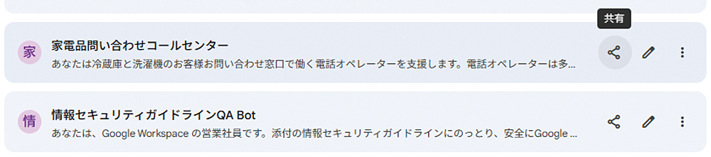 Canvas が個人の創造性を形にする機能だとしたら、次に紹介する「 Gem共有 」機能は、その知見をチームの力に変える役割を担います。