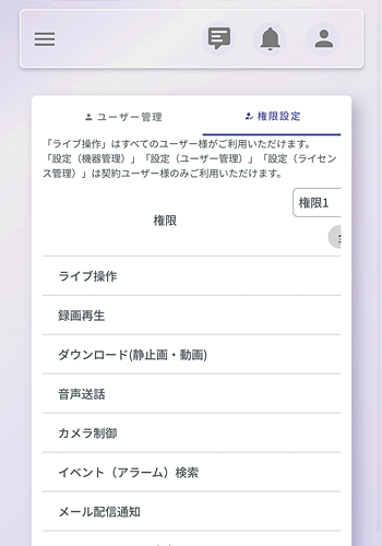 WV-S71301-F2LWの録画の確認や設定などの操作は、スマートフォンアプリ「i-PRO Mobile APP」から行える。カメラの機器登録をはじめ表示設定や音声、通知設定などを片手で完結できる。人の叫び声やガラスの破損音などを検知する「AI音識別」機能を搭載し、アラームで通知可能だ。