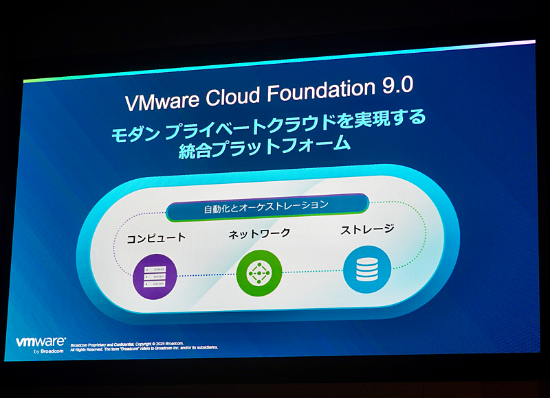 2025年10月29日、Broadcom VMware部門(VMware by Broadcom)は国内向け年次イベント「VMware Explore on Tour in Tokyo」を開催した。基調講演とプレス/アナリスト説明会では、同社が掲げる「モダン プライベートクラウド」のビジョンと、それを支える最新プラットフォーム「VMware Cloud Foundation 9.0」(VCF9.0)の詳細、さらにNECとの戦略的パートナーシップの強化などが発表された。
