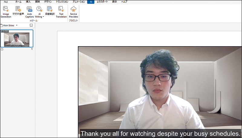 自動翻訳をクリックし、翻訳する言語を選択すると、字幕の内容が自動的に翻訳される。対応言語は27に上り、幅広い言語環境に対応可能だ。