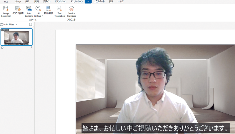 「クラウド音声」機能を利用すれば、翻訳した字幕を人工音声で読み上げられる。人工音声は多言語に対応しており、外国人労働者への教材の作成にも有効に活用できそうだ。