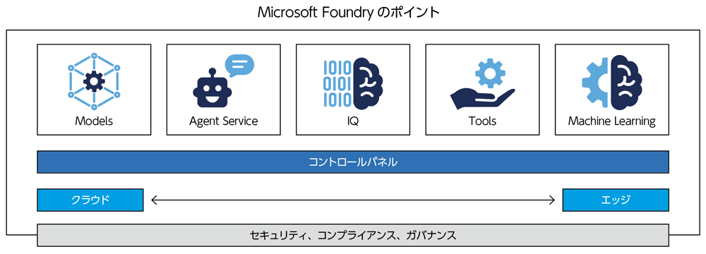 重要なポイントは多数ありますが、Anthropicが新たに追加されて現在1万1,000以上のサービスをサポートしている「Models」、さまざまな情報を理解してより高度なエージェントを作れる「IQ」、エージェントの動作やパフォーマンスを確認する「Agent Service」、管理の観点まで開発者の目線でサポートできる仕組みである「Control Plane」などがあります。併せて、Igniteのセッションでは「Data」の重要性にも触れており、Intelligence layerの考え方についても説明がありました。