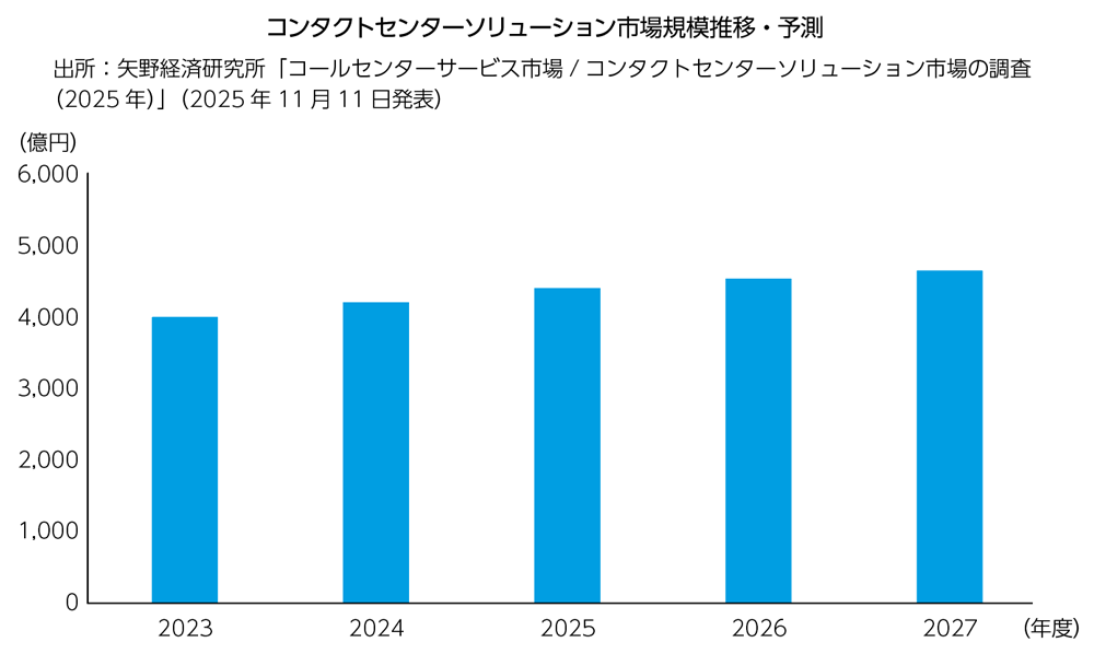 国内コンタクトセンターソリューション市場は、2025年度以降も着実に伸長していく見込みだ。労働人口の減少に伴うオペレーター不足が深刻化し、従来オペレーターが担ってきた業務がシステム化されていく。そのため、電話以外のチャネルやCRM(Customer Relationship Management)などデータ活用の領域も含めたシステム投資を前提に、同市場は拡大していくと予測している。
