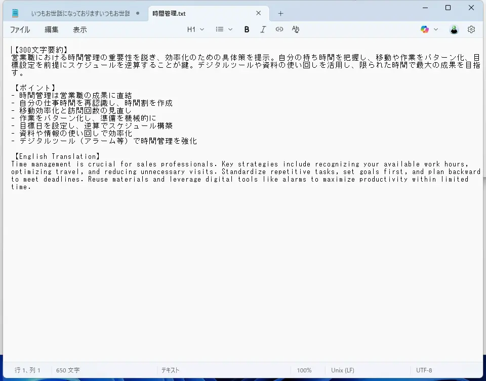 同様の作業で、テキストファイルにも書き出してみたが、こちらもわかりやすくていい。箇条書きもしっかりできているのが素晴らしいではないか。