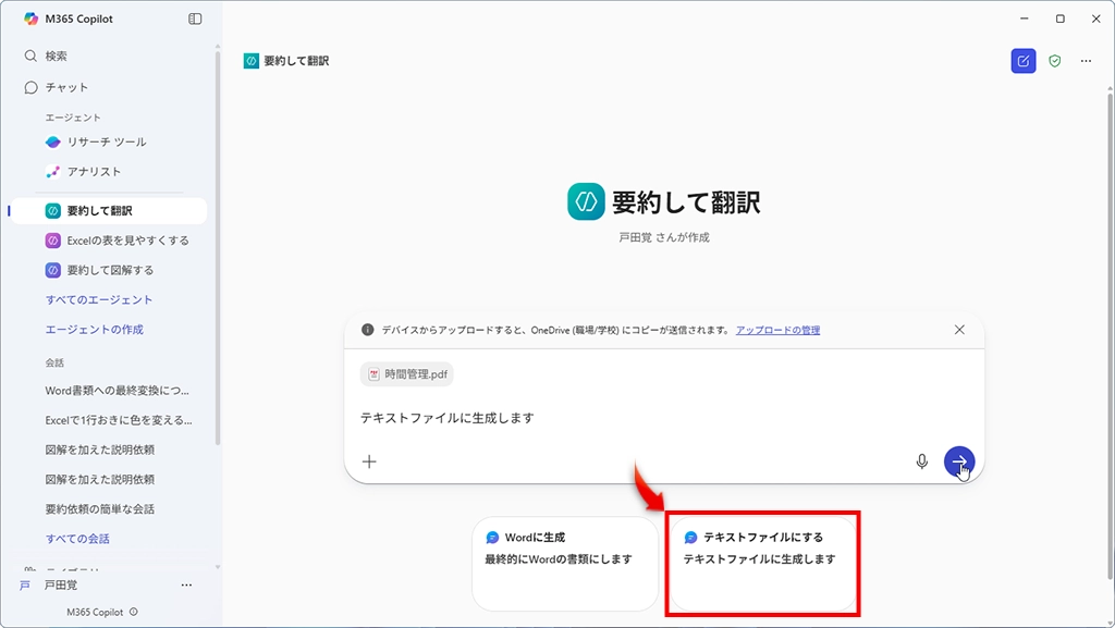 エージェントでは、Microsoft 365 Copilotでできないことができるわけではないと思われる。ようするに、使う側の主にプロンプトを書く作業を省力化してくれる機能だと考えればいいだろう。