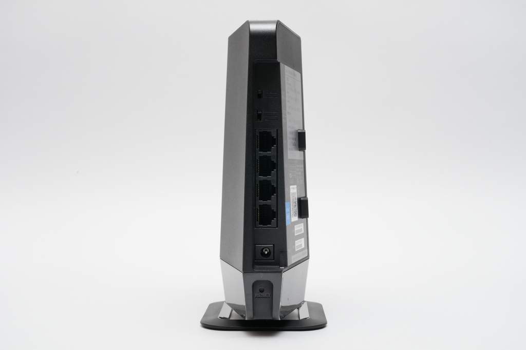 本体サイズは60×177×165mm、重量は約500g。インターフェースは、INTERNET端子(2.5GbE)×1、LAN端子(1GbE)×3が用意されています。パッケージには本体以外にスタンド、LANケーブル(0.5m)、ACアダプター、説明書(保証書含む)が同梱。昨今のデジタル機器はマニュアルをQRコードからネット経由で取得する製品が多いですが、無線LANルーターである本製品についてはそのネット回線が開通していない可能性があるので、説明書が紙で同梱されている点は、非常にありがたいところです。
