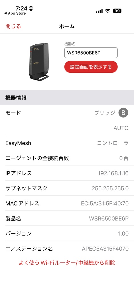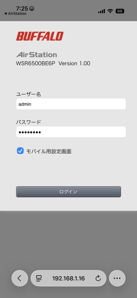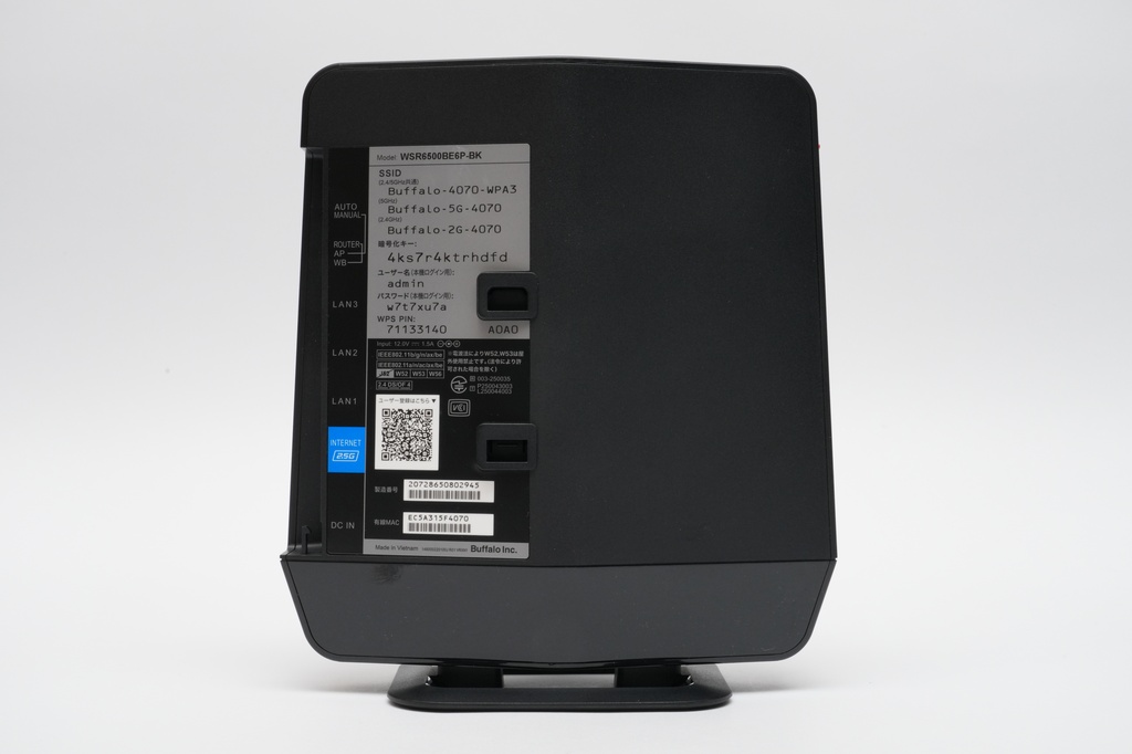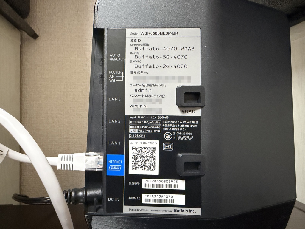これであとは特になにもせず「WSR-6500BE6P」を使えますが、スマホに「AirStation」アプリをインストールしておきましょう。アプリインストール後、入力を求められるユーザー名は「admin」で、パスワードは本体背面に「本機ログイン用」と記載されています。