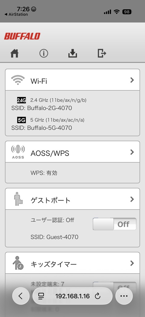 「AirStation」アプリでは、ルーターの基本機能、セキュリティー、ゲスト機能、キッズタイマーなどをカスタマイズ可能です。法人で利用するのであればゲスト機能は設定しておいたほうがいいですね。また当然ですが、本体背面の各種情報が記載されたシールは剥がすか、最低でも初期パスワードは変更すべきでしょう。