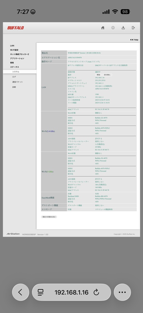 注意点としては、「Buffalo-●●●●-WPA3」のように、末尾に「WPA3」が含まれるSSIDが表示されているのであれば、必ずそれを使うことです。このSSIDを使えば、WPA3規格の強固なセキュリティー機能を利用できます。逆にWPA3非対応の古いPCやスマホ、ゲーム機を使う場合には、ほかのふたつのSSIDを使うことになります。