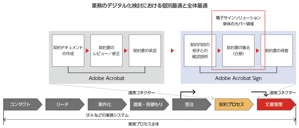 電子契約の市場は、コロナ禍を契機に急速に拡大したと振り返るのは、アドビ デジタルメディア事業統括本部 営業戦略本部 ドキュメントクラウド戦略部 ビジネスデベロップメントマネージャーを務める岩松健史氏。「当時はテレワークの普及に伴って、紙の契約書から電子契約にすぐに移行したいというニーズが爆発的に増え、導入が大きく進みました。しかし、現在はこのような単発的な導入ではなく、業務システム全体の電子化を実現する際に、電子契約を組み込むような動きが増えているようです」と語る。