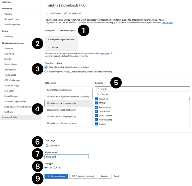 その後、CSVファイルをダウンロードすれば、Excelでファイルを開けます。なお、前提として、Partner Centerアカウントを保有し、レポート閲覧権限(Report Viewer)の付与が条件となります。