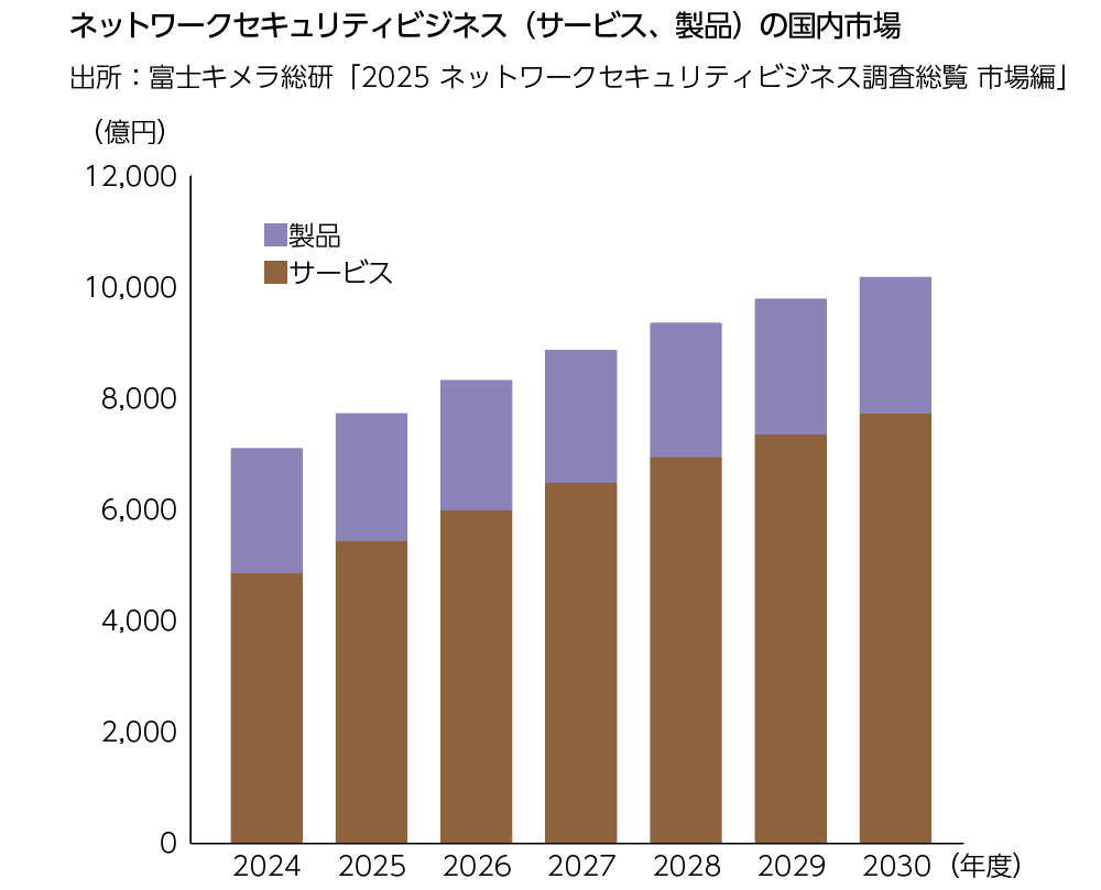 富士キメラ総研は、ネットワークセキュリティ関連の市場を調査した。本市場はゼロトラスト関連のサービス・製品が継続して成長しているほか、統合型製品や日常的にセキュリティ管理を徹底するサイバーハイジーンの実現を目的としたサイバーレジリエンス、教育関連のサービス・製品が好調である。ゼロトラストへの取り組みが継続するとともに、生成AIやクラウド環境などの新しい領域へのセキュリティ投資が増加し、市場は堅調に拡大している。