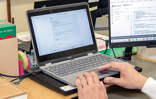 また、学校の運営要項などの独自ルールをまとめた文書を「NotebookLM」にアップロードすることで、学校運営の情報共有を効率化している。「学校には、行事の進め方や教科書の注文方法など、担当教員しか把握していない決まりごとが数多くあります。そのたびに担当の教員に確認していると業務が止まってしまいます。そこで、それらの情報を全てNotebookLMに集約し、分からないことはそこに尋ねる運用にしたところ、利便性が非常に向上しました」と遠藤氏は説明する。
