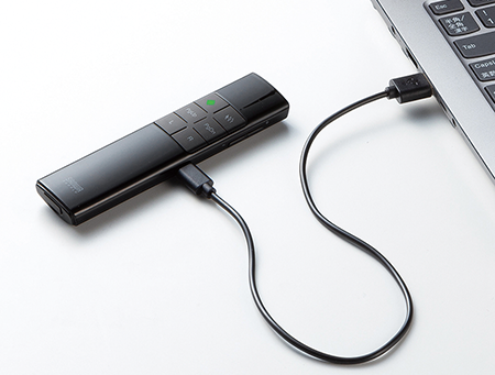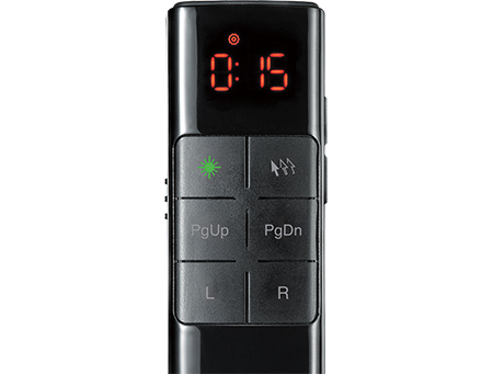 サンワサプライはレーザーポインター「MA-WPR17BK」を発売した。視認性の高いグリーンレーザーにより、レッドレーザーの約8倍の明るさを実現している。本体とレシーバーが自動でペアリングされるため、手軽に使い始められる。使用後はレシーバーを本体底面に収納すれば、紛失の心配もない。設定した時間に本体が振動するタイマー機能は、プレゼンの時間管理に役立つ。本製品にはジャイロセンサーを搭載している。ボタンを押しながら本体を傾けるだけで簡単にカーソル操作が可能だ。スライドへの書き込みにも対応し、追加したい情報を即座に加筆したり、重要な箇所に印を付けて目立たせたりできる。ハイブリッド会議では、会議室と配信用の双方の画面に書き込みを表示することで、オンライン参加者の見づらさを軽減する。また、通信には電波障害に強い2.4GHzワイヤレスを使用している。通信距離は最大30mのため、大規模な会場でも活用可能だ。