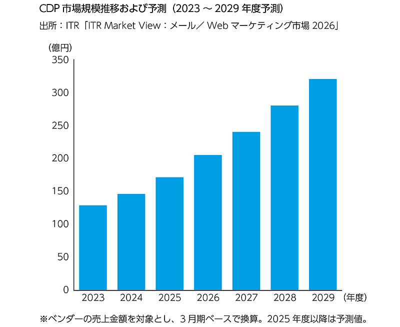 アイ・ティ・アール(以下、ITR)は、国内のCDP市場規模推移および予測を発表した。2024年度の同市場の売上金額は、前年度比13.4%増の146億円となった。2025年度は同17.3%増を見込んでいる。