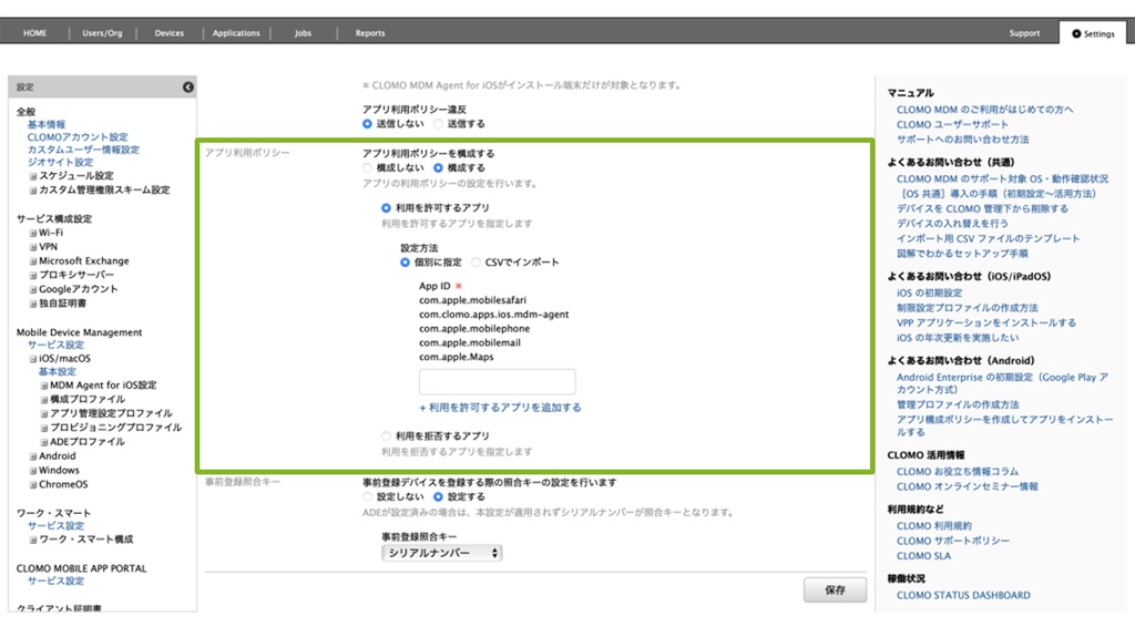 特に日本企業の現場では、ITリテラシーの差が大きく、意図せず不適切なアプリをインストールしてしまう従業員も少なくない。CLOMOは、社内専用のアプリストア(エンタープライズApp Store)を構築する機能を備えており、業務に必要なアプリのみを安全かつ強制的に配信できる。これにより、自由化されたOS環境下であっても、企業は一定のセキュリティ水準を強制的に維持できるのだ。
