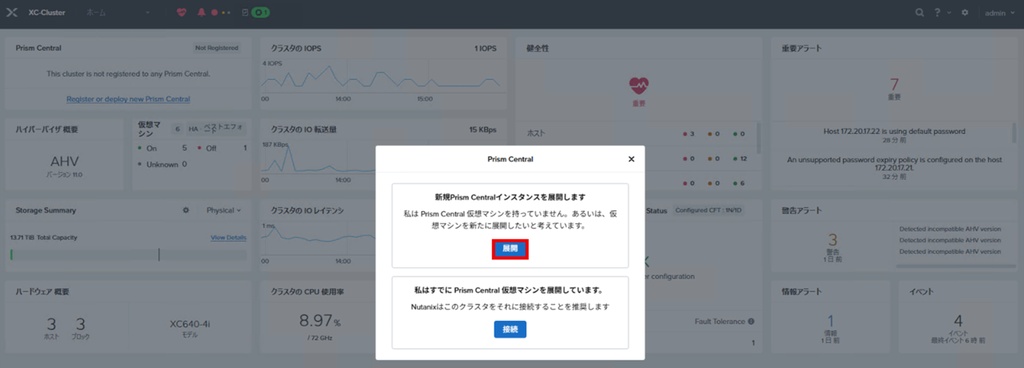 3|「展開」をクリックするとPrism Centralの展開が始まります。