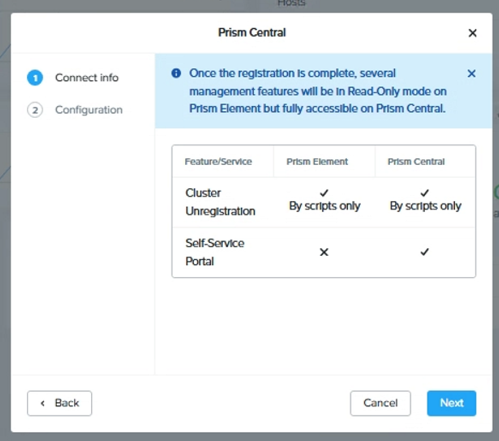 3|Prism CentralのIPアドレス(またはFQDN)、ポート、ユーザー情報を入力することでクラスタをPrism Centralに登録することができます。